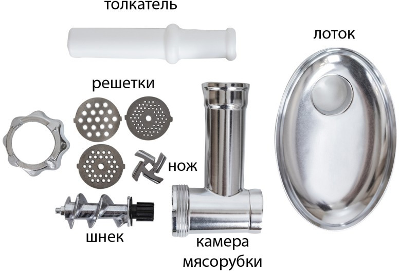 - Мясорубка, решетки, гарантийный талон, инструкция на русском языке