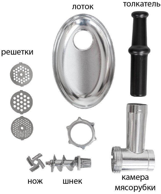 - Мясорубка, решетки, гарантийный талон, инструкция на русском языке