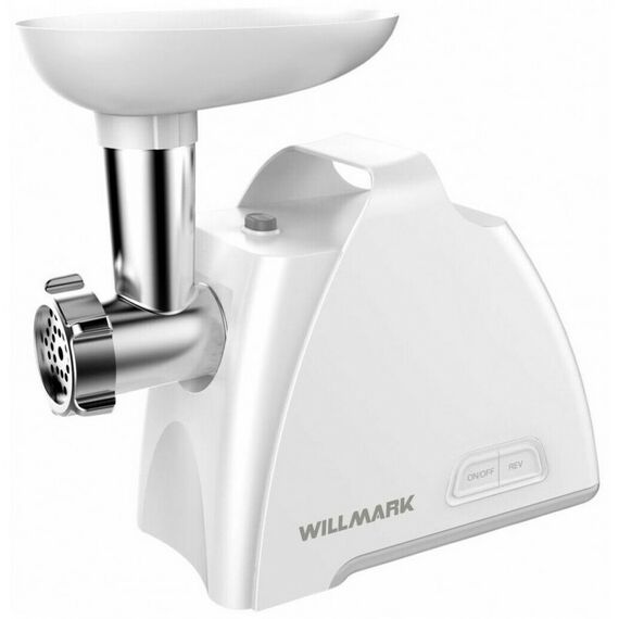 - Электрическая мясорубка обладает расширенным набором функций и аксессуаров. Рабочая часть устанавливается на мясорубку под наклоном и поворачивается до вертикального положения, а снимается путем нажатия на кнопку расположенную на передней части корпуса и поворотом её вправо
