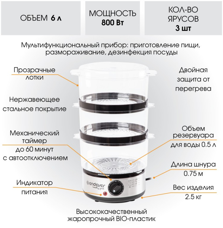 Пароварка Endever Vita-173 черный/стальной [90034]