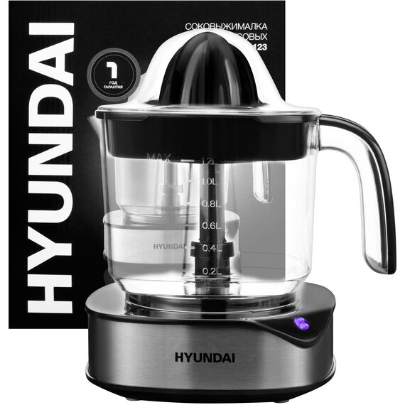 Соковыжималка цитрусовая Hyundai HY-JC4123 30Вт 1200мл. черный/нержавеющая сталь