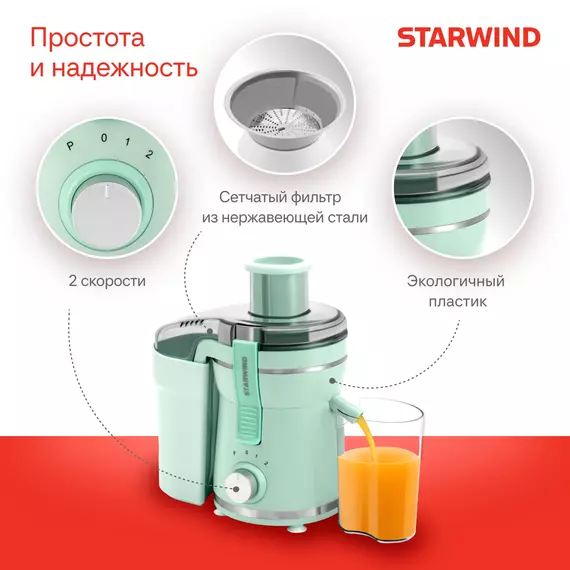 Соковыжималка STARWIND SJ2326 центробежная 750Вт рез.сок.:500мл. бирюзовый/бирюзовый
