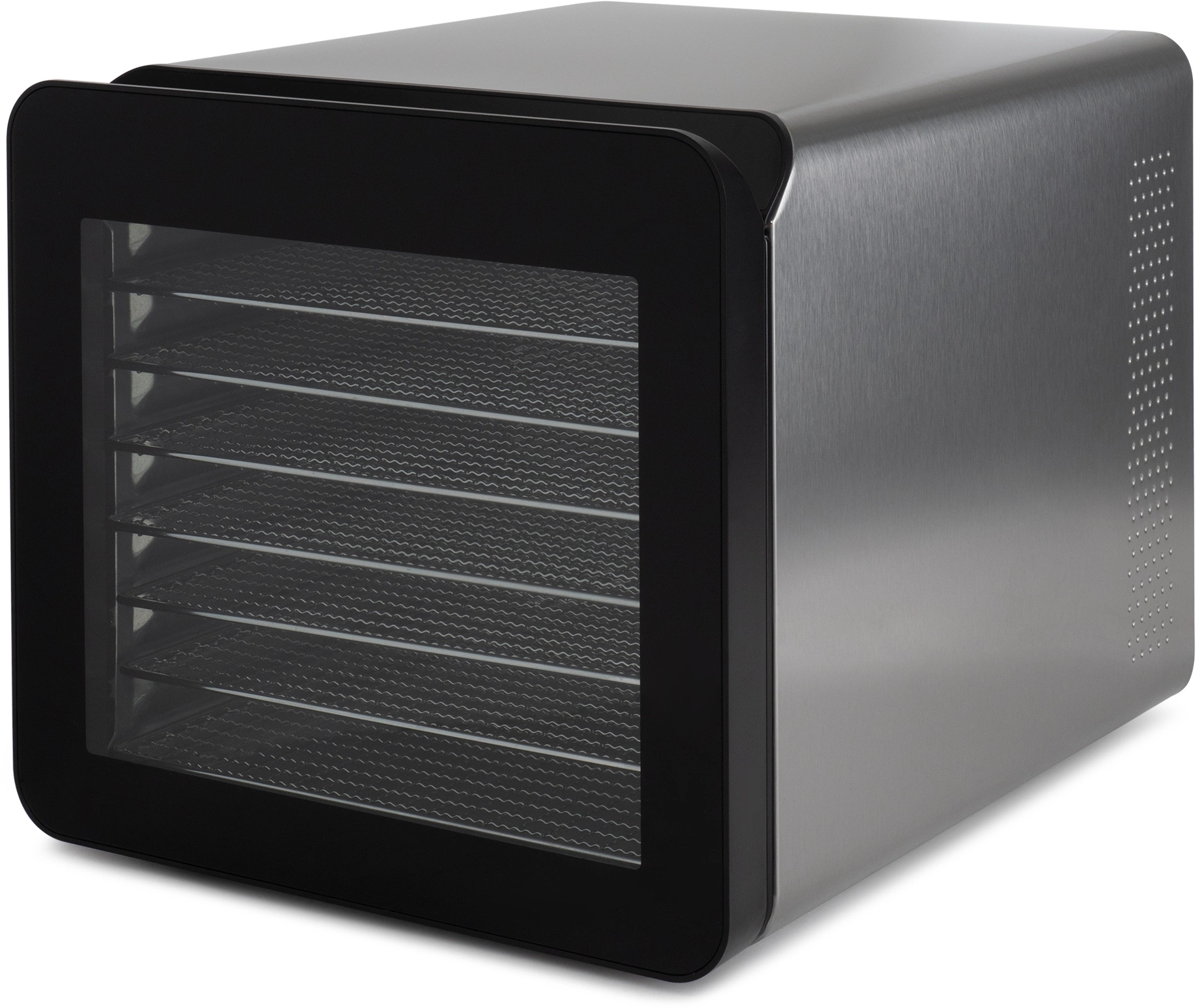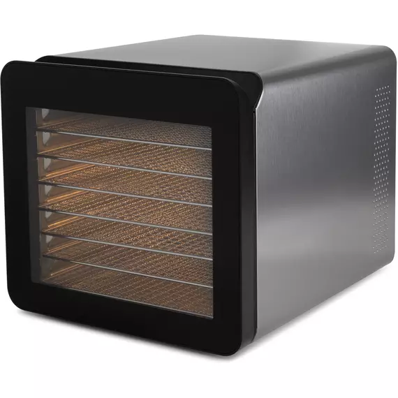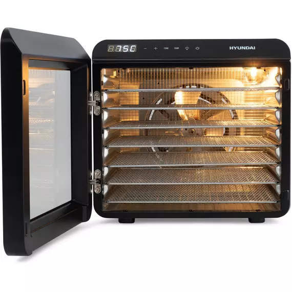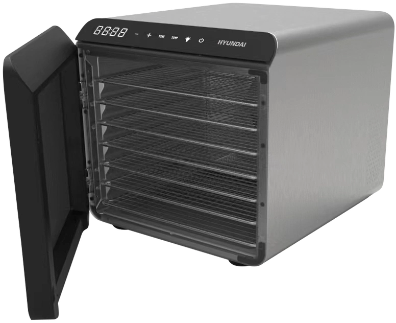 Сушильная камера в металлическом корпусе, с регулировкой температуры и таймером, для сушения овощей и фруктов, грибов и трав, а так же вяленья мяса и рыбы. Весь необходимый функционал, в удобном форм-факторе с сенсорным управлением.