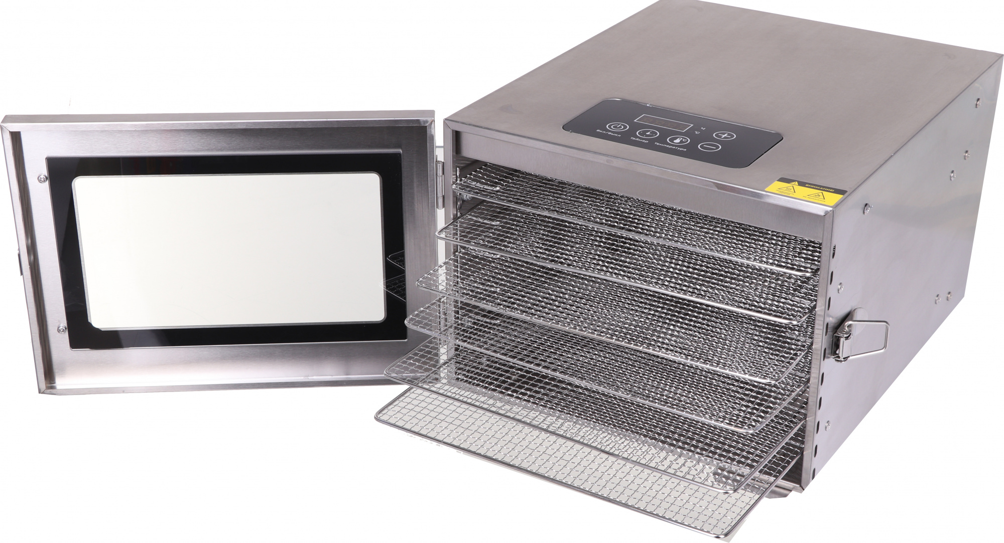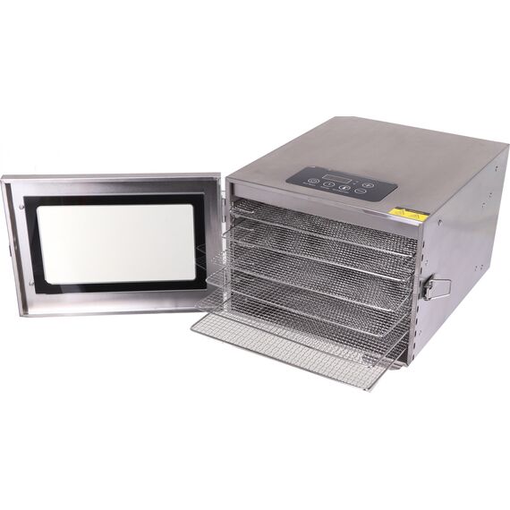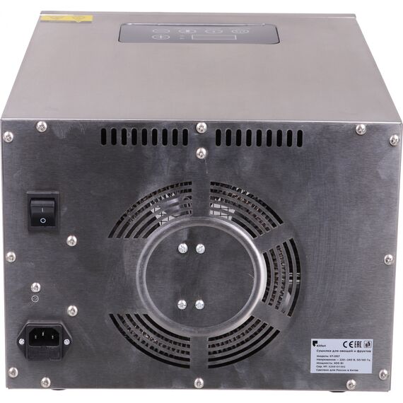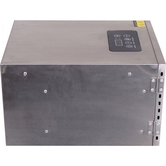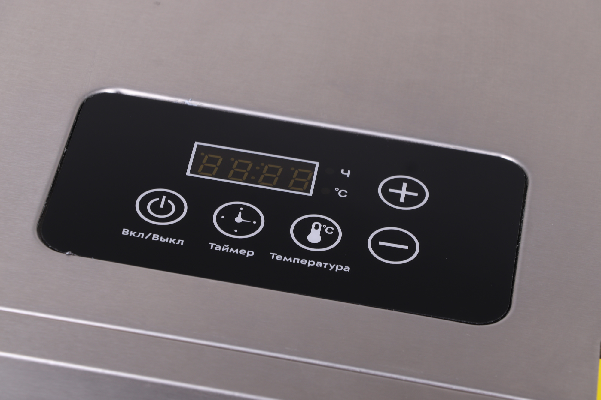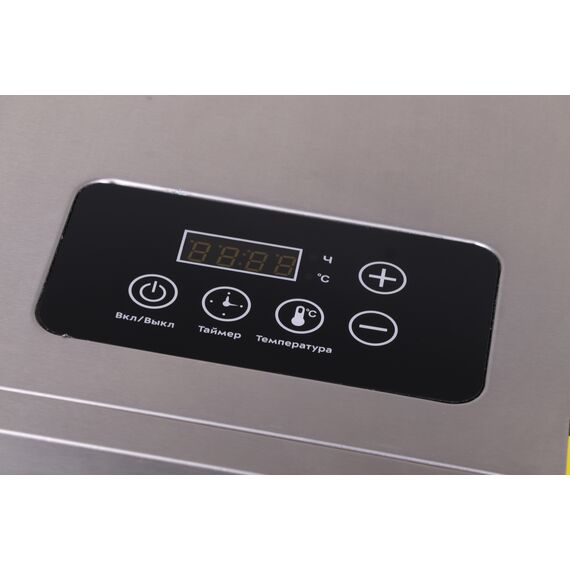 | Особенности | На сушилке можно установить температуру сушки в диапазоне 30-90 °C с шагом 1 °C. Прибор также оснащён таймером до 24 часов работы с шагом 30 мин. Выбранные настройки отображаются на LED-дисплее. Их можно менять в процессе сушки, не прерывая работу. |