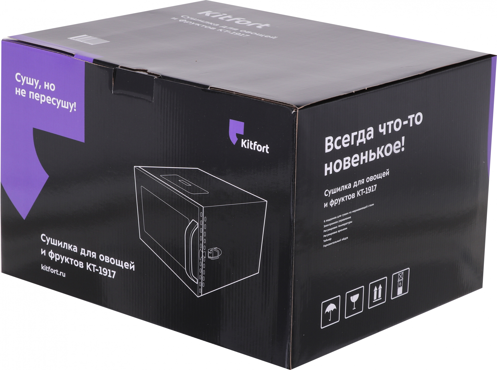 С электросушилкой Kitfort KT-1917 у вас под рукой всегда будет живая еда. Сушилка быстро насушит вам фрукты, овощи и ягоды, сохраняя их полезные свойства. У вас больше не будет стоять вопрос, куда деть богатый урожай. Сушилка – это идеальный выход!