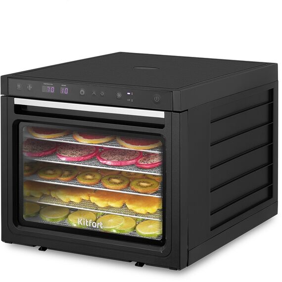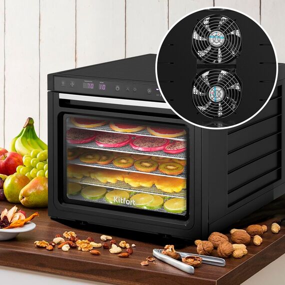 Сушка для фруктов и овощей Kitfort KT-1962 6 поддонов 1000Вт черный