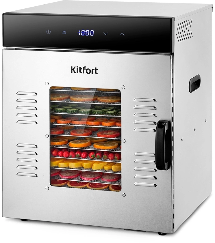 Сушка для фруктов и овощей Kitfort KT-1967 15 поддонов 1000Вт нержавеющая сталь
