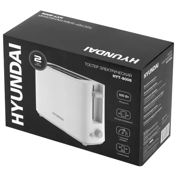 Тостер Hyundai HYT-8006 500Вт белый/серый