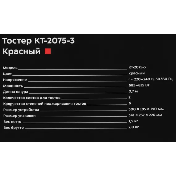 Тостер Kitfort КТ-2075-3 815Вт красный