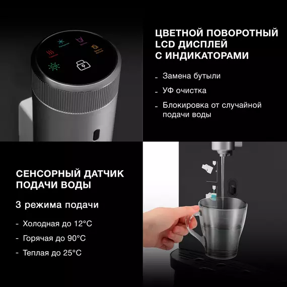 Кулер Hyundai AquaSense UV H-WD7815E напольный электронный графитовый