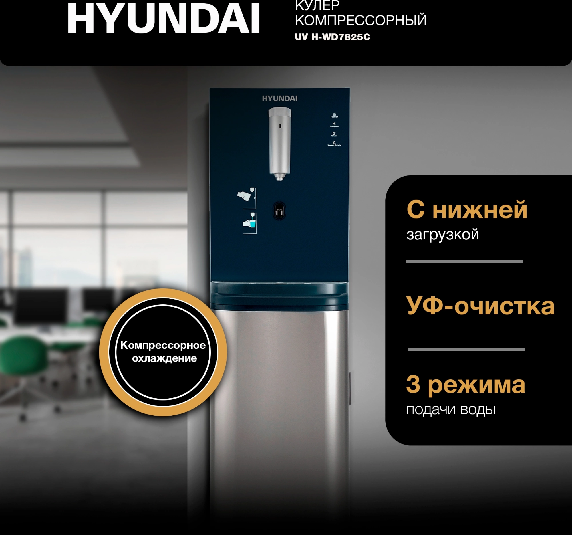 Кулер Hyundai AquaSense UV H-WD7825C напольный компрессорный графитовый