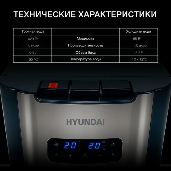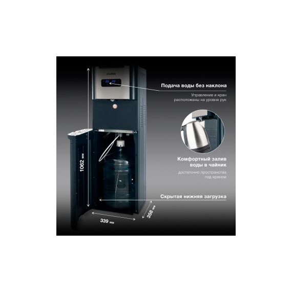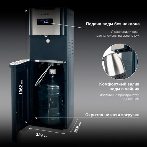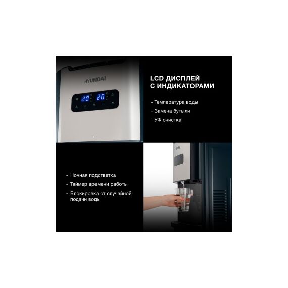 Кулер напольный электронный Hyundai AquaTouch UV H-WD7615E графитовый