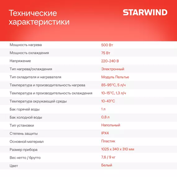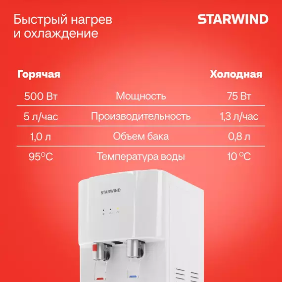Кулер напольный STARWIND SW-1113EW электронный белый