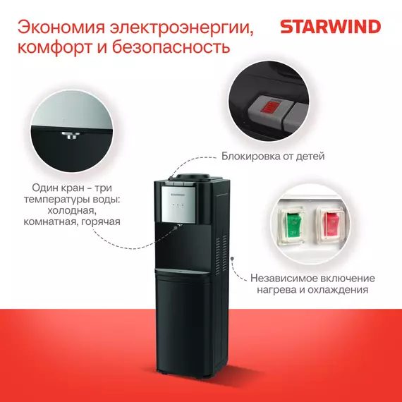 Кулер напольный STARWIND SW-1115EB электронный черный