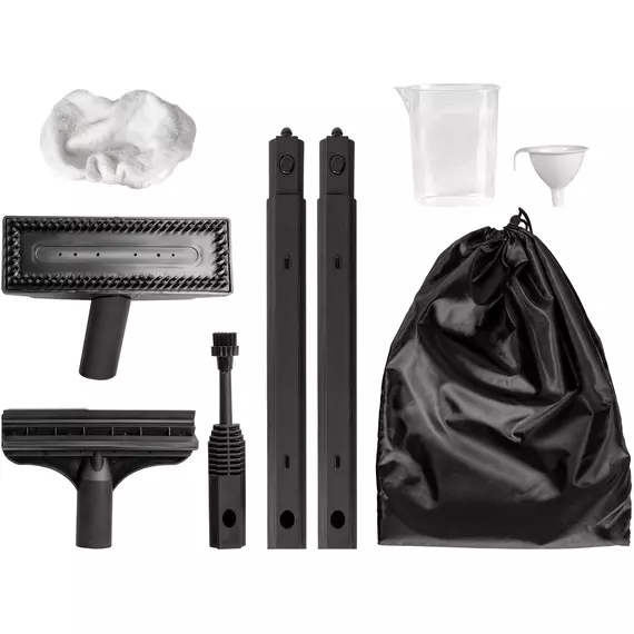 | Принадлежности в комплекте | Тряпка, 2 удлинительные трубки, воронка для наполнения бойлера водой, мешок для хранения аксессуаров, мерный стакан, уплотнительное кольцо. |