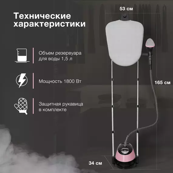 Отпариватель напольный Hyundai H-US02543 1800Вт розовый/черный