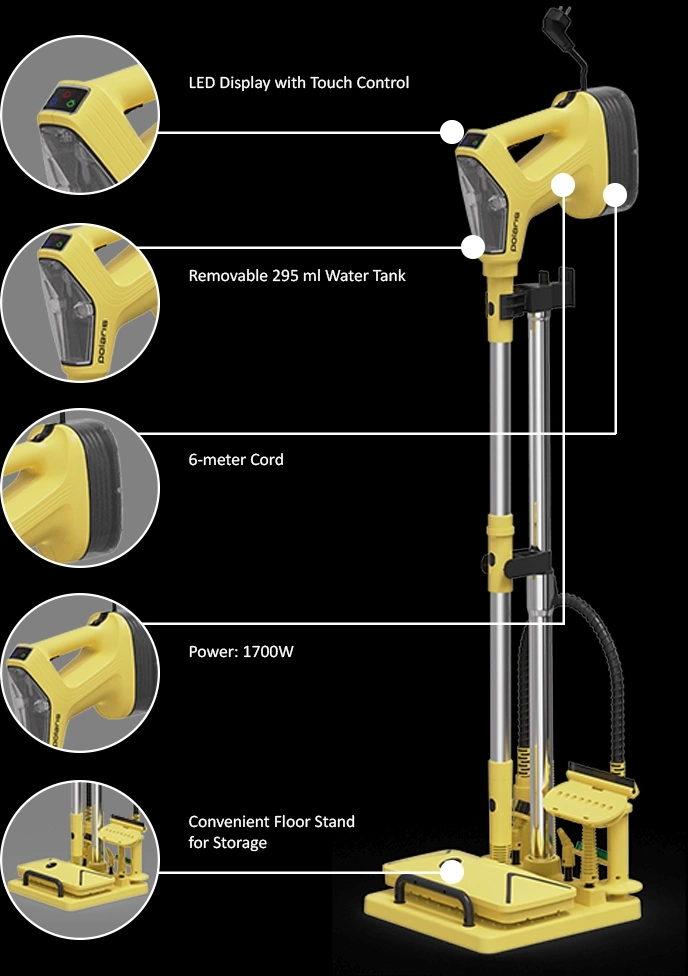Пароочиститель напольный Polaris PSC 1701C 1700Вт желтый/черный