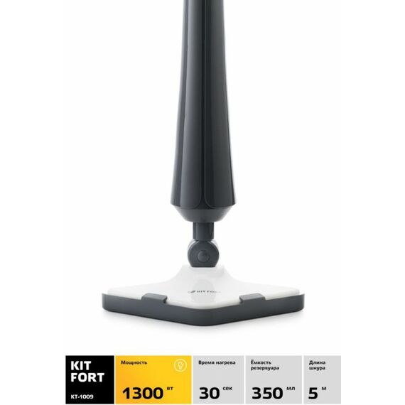Швабра паровая Kitfort КТ-1009 1300Вт черный/белый