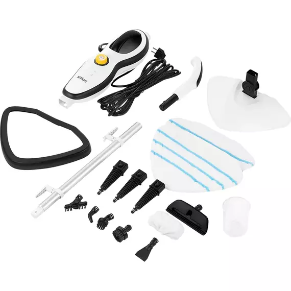 | Комплектация | Удлинительная ручка, щетка для пола, тряпка для пола - 2 шт., тряпка для отпаривания, рамка для ковра, угловая насадка, скребок, струйная насадка - 3 шт., насадка для отпаривания, малая и больш круглая нейлоновая щетка, плоская нейлоновая щетка. |