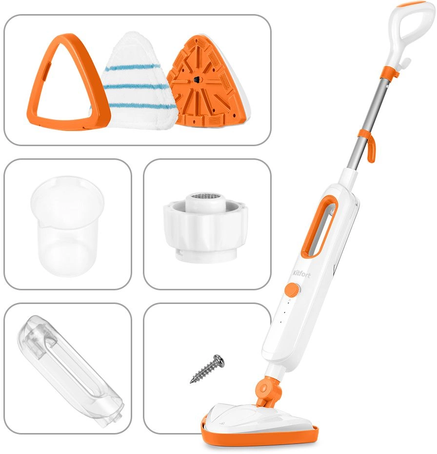 Швабра паровая Kitfort КТ-1048-2 1300Вт белый/оранжевый
