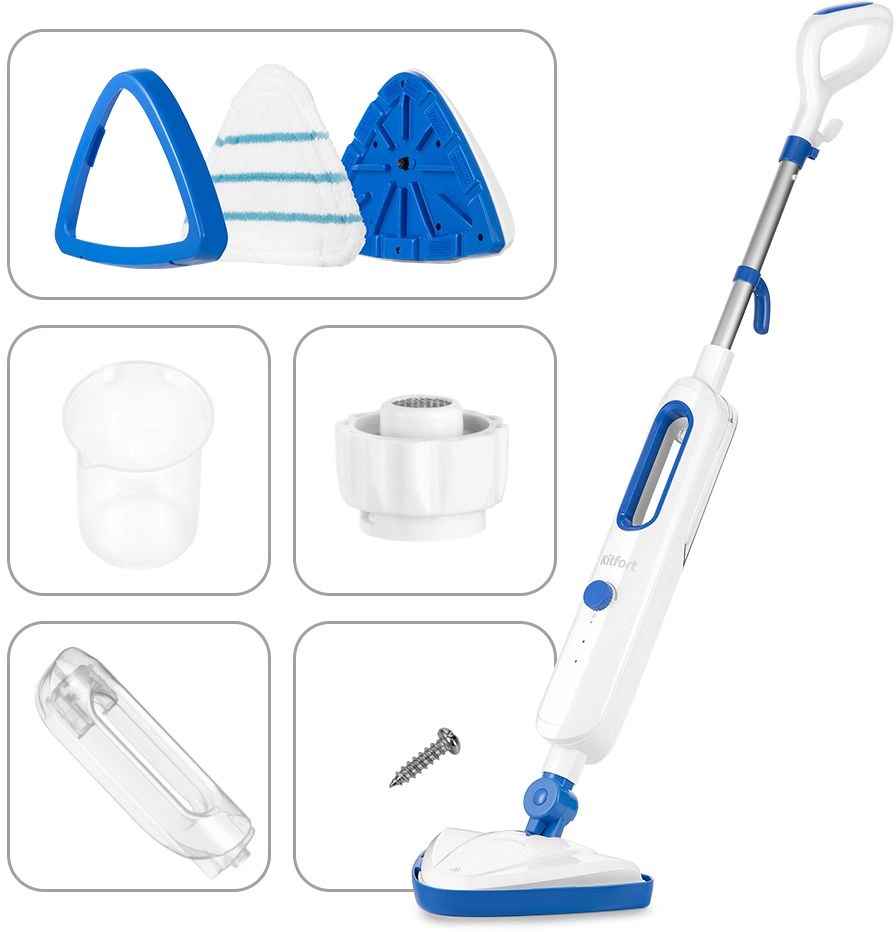 Швабра паровая Kitfort КТ-1048-3 1300Вт белый/синий