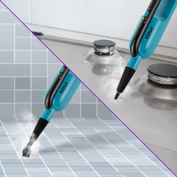 Швабра паровая Kitfort КТ-1078 1350Вт черный/бирюзовый