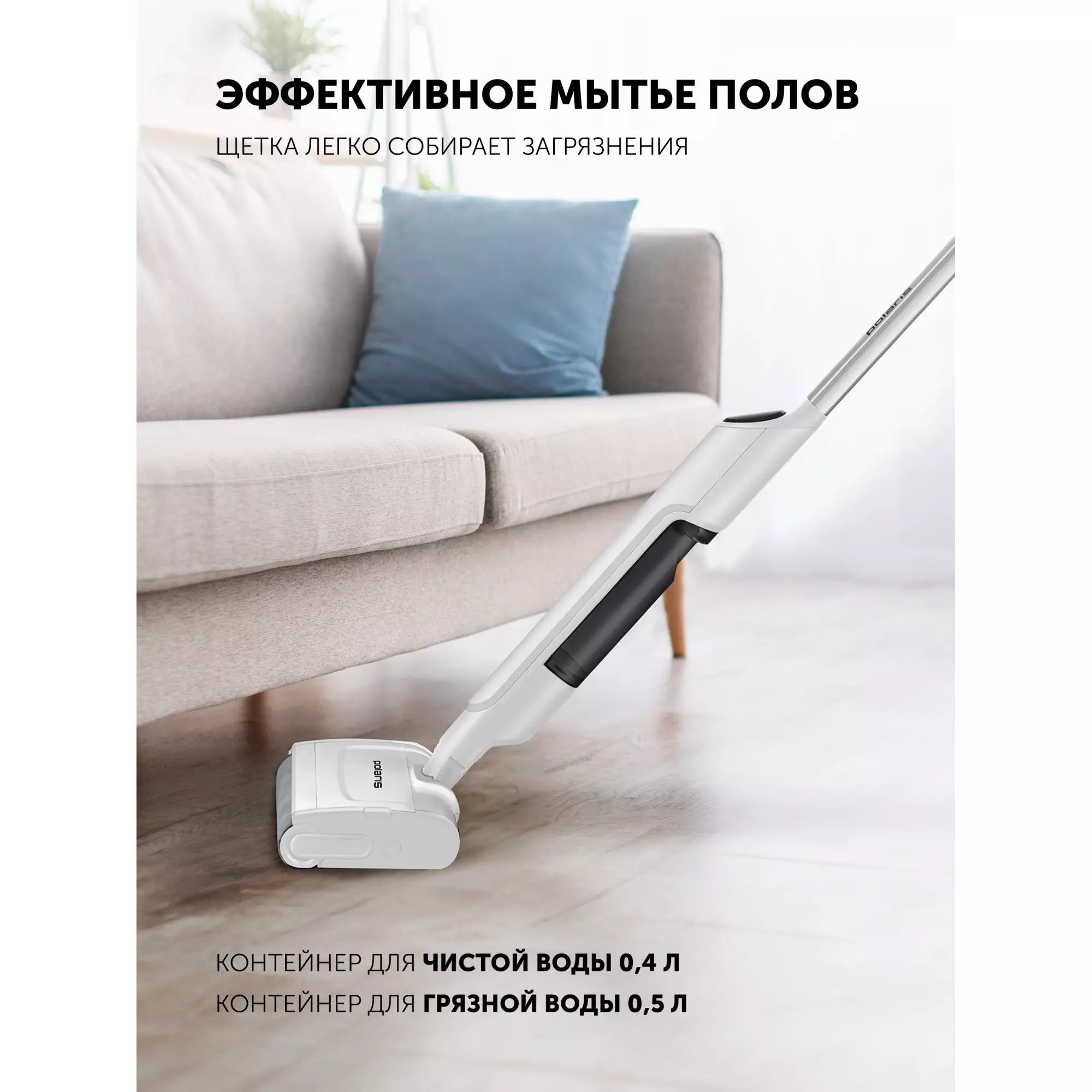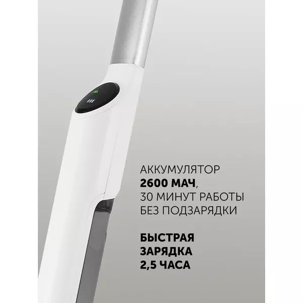 Беспроводная электрошвабра PFW 3030 благодаря своей маневренности позволяет эффективно мыть полы даже под мебелью и в труднодоступных местах. Мощность электрошвабры 40 Вт. Время работы до 30 мин благодаря мощному аккумулятору 2600 мАч. Быстрая зарядка до 2,5 часов.