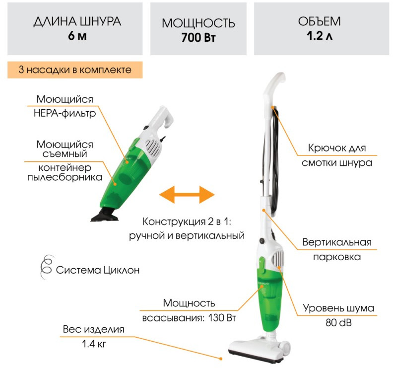 - Конструкция 2 в 1: ручной и вертикальный