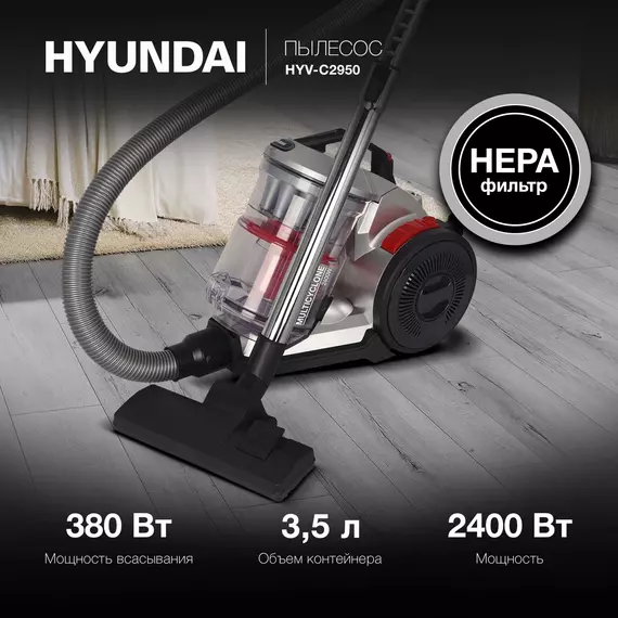 Пылесос Hyundai HYV-C2950 2400Вт серебристый/красный