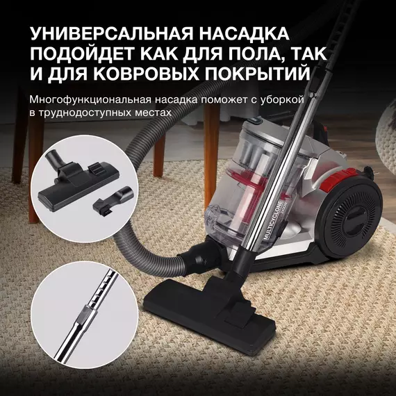 | Комплектация | насадка для пола и ковров, щелевая насадка, щетка |