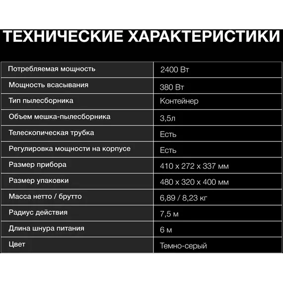 | Объем пылесборника | 3.5 л |