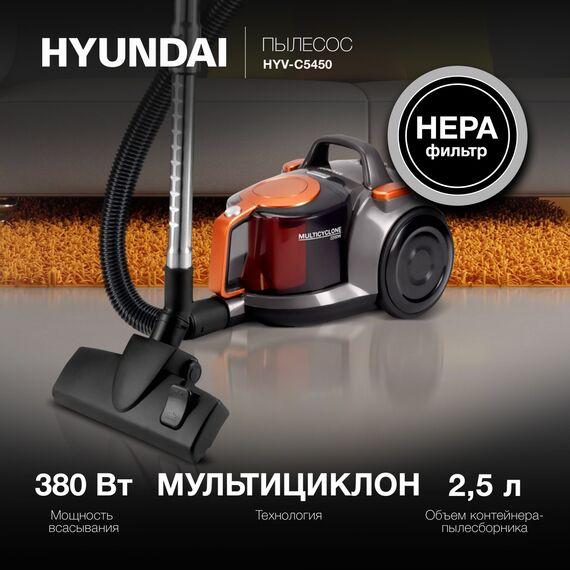 Hyundai HYV-C5450 – это эргономичный пылесос в оригинальном двухцветном цветовом решении.