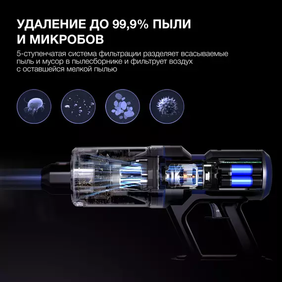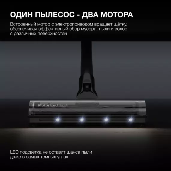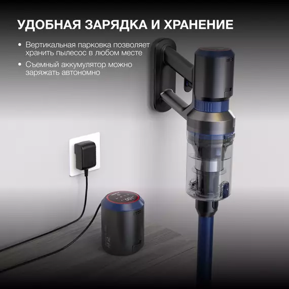 | Особенности | моторизированная щетка с подсветкой, вертикальная парковка, бесщеточный двигатель, фильтр HEPA 13 |
