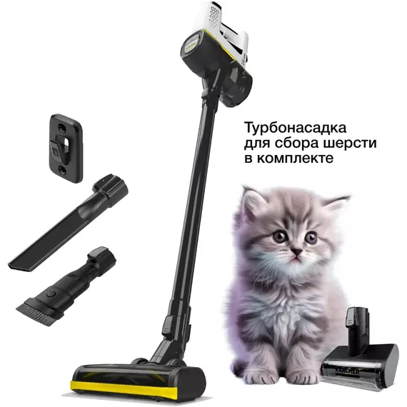 Аккумуляторная модель вертикального пылесоса для сухой уборки Karcher VC 4 Cordless myHome Pet — лёгкий и надежный помощник, который всегда под рукой. В комплектацию версии Pet входит мини-турбощетка, позволяющая легко и тщательно удалять шерсть животных с мягкой мебели.