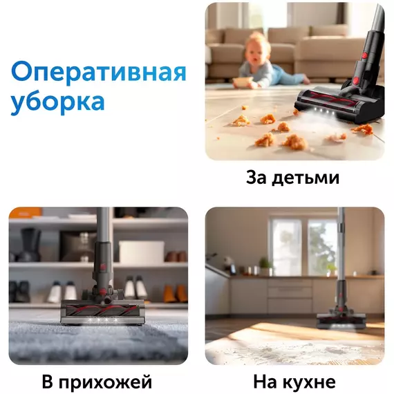 | Особенности пылесоса | LED-дисплей, легко очищаемый пылесборник, место для хранения насадок, настенное крепление, подсветка зоны уборки |