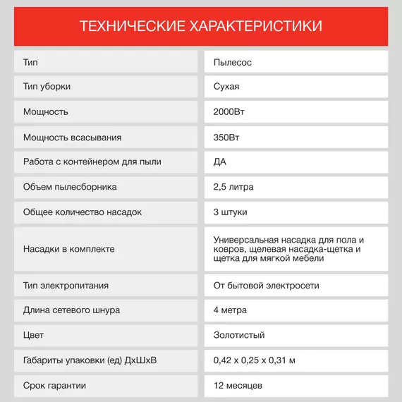 | Габариты упаковки (ед) ДхШхВ | 0.42x0.25x0.31 м |