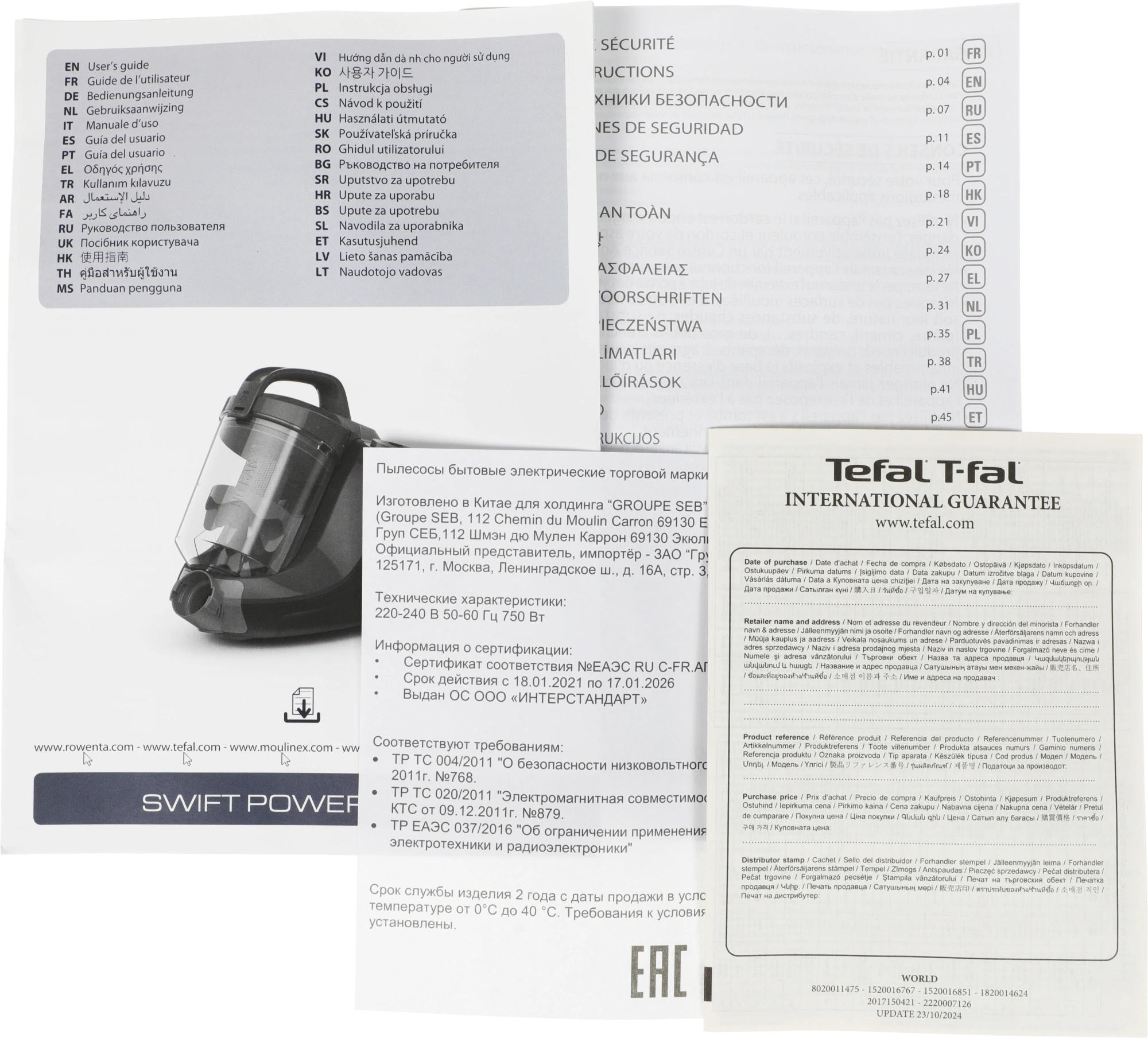 Пылесос Swift Power Cyclonic TEFAL TW2922EA 750Вт бирюзовый/черный [7211005022]
