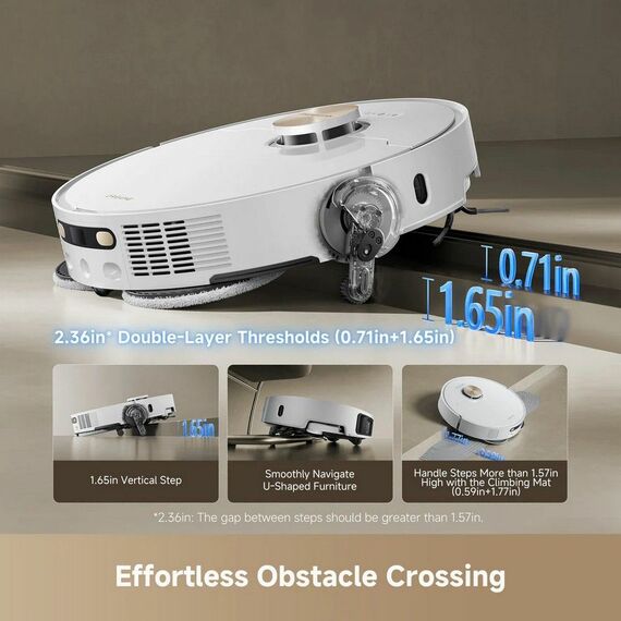 | Комплект поставки | Робот-пылесос, базовая станция, боковая щетка, основная щетка, пластина для увеличения рампы базовой станции, салфетка для швабры - 2 шт (предварительно установленная), документация, держатель салфеток для швабры - 2 шт, мешок для мусора - 2 шт (предварительно установленный — 1 шт), ингибитор образования накипи, фильтр-пылесборник, чистящее средство |