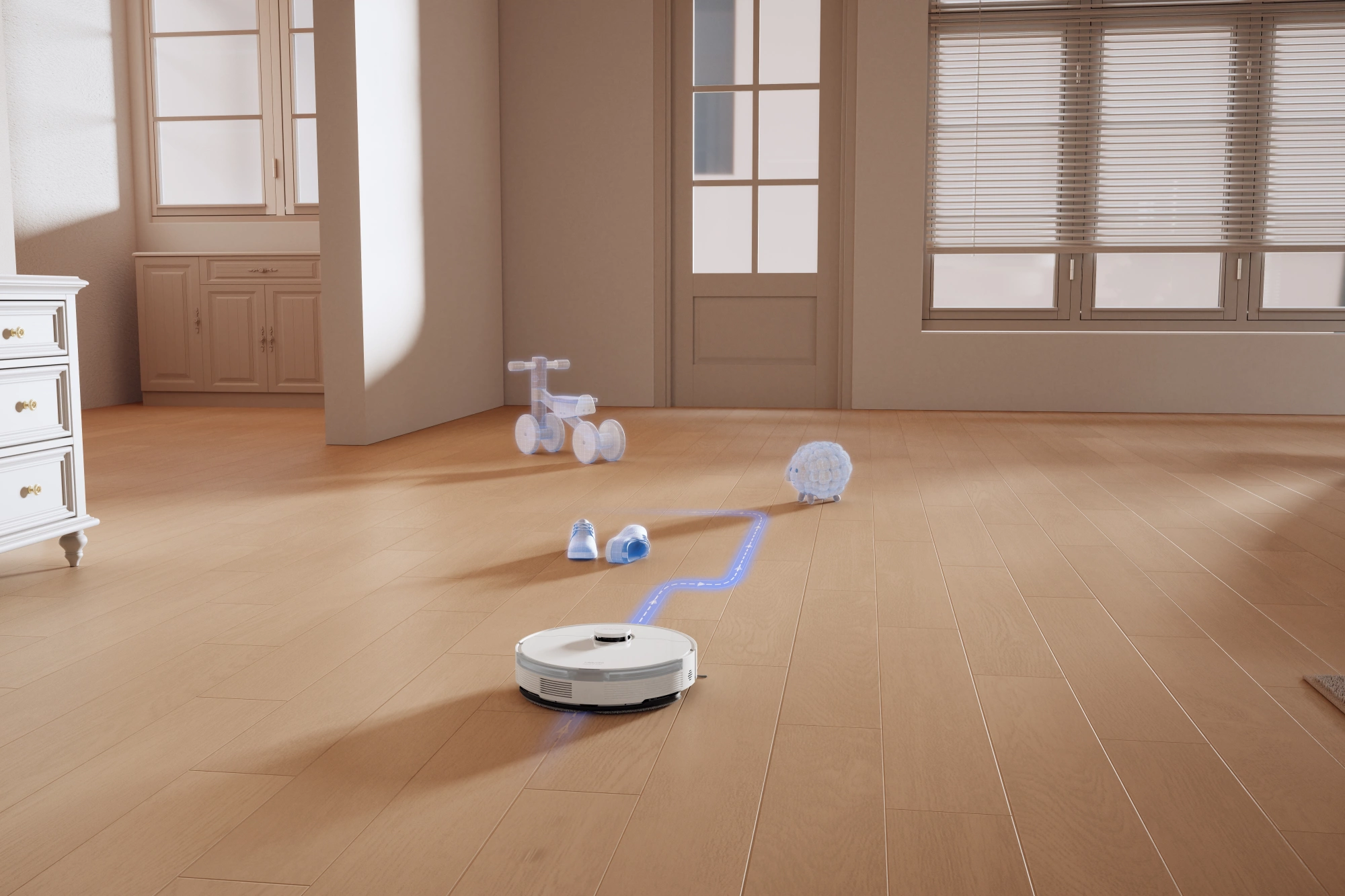 Высоко точная навигация Solid-Fixed Laser (SoF LiDAR) + алгоритм SLAM для быстрой ориентации и планирования маршрутов. Подъем швабры на высоту до 7 мм. Технология уборки RoboSwing. Работа с помощью приложения Dreamehome.