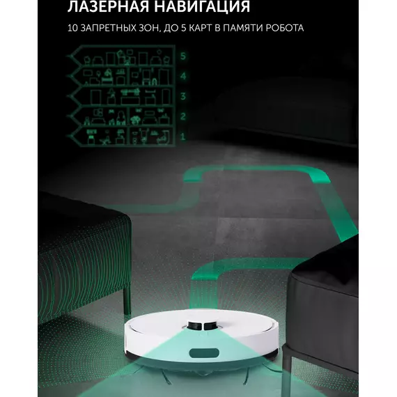 | Особенности | Высокоточная система лазерной навигации для построения карты помещения, сохраняет до 3 карт; Разделение на зоны уборки – до 10 комнат; Ограничение зоны уборки - до 10 зон в каждой комнате; Возобновление уборки с точки остановки после подзарядки; Расписание уборки: часы, дни.CP2 |