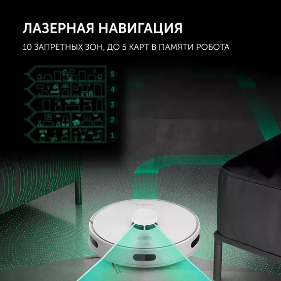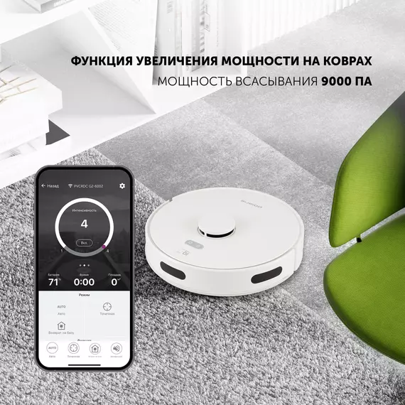 | Функции робота-пылесоса | автоматическая работа, автоматический поиск зарядного устройства, построение карты помещения, распознавание ковров, сохранение карты помещения, уборка по расписанию |