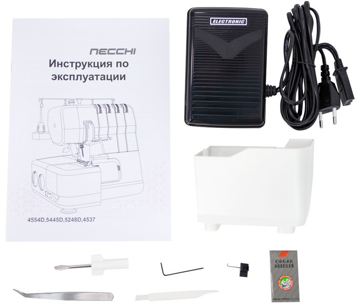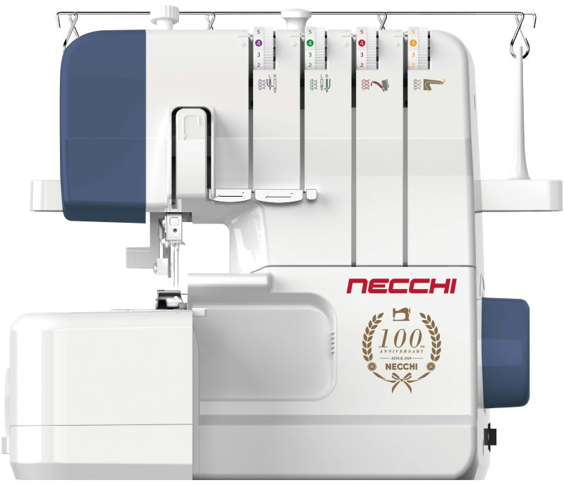 Оверлок Necchi 4554D с электромеханическим управлением используется для качественной обметки срезов при пошиве различных изделий в домашних условиях. Часть рабочей платформы устройства может сниматься, образуя свободный рукав, что позволяет удобно обрабатывать манжеты, штанины и узкие проймы без необходимости их распарывать.