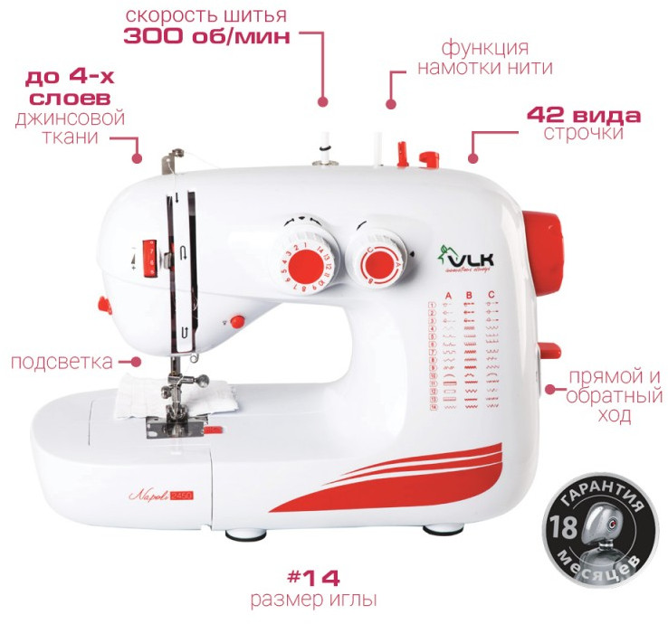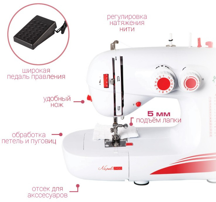 - Длина стежка при функции «реверс»: 2 - 2.5 мм