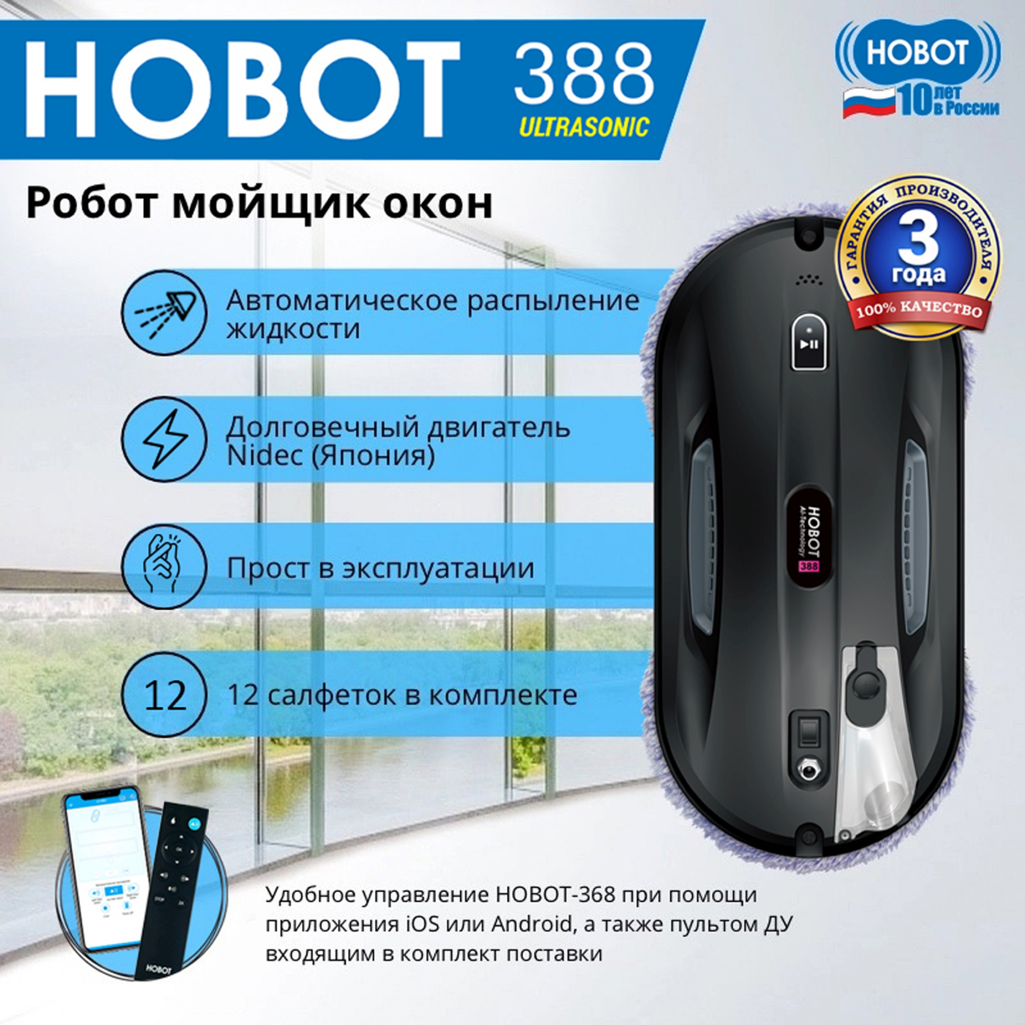 Мойщик окон Hobot 388 ширина скребка 148мм, питание от сети, черный