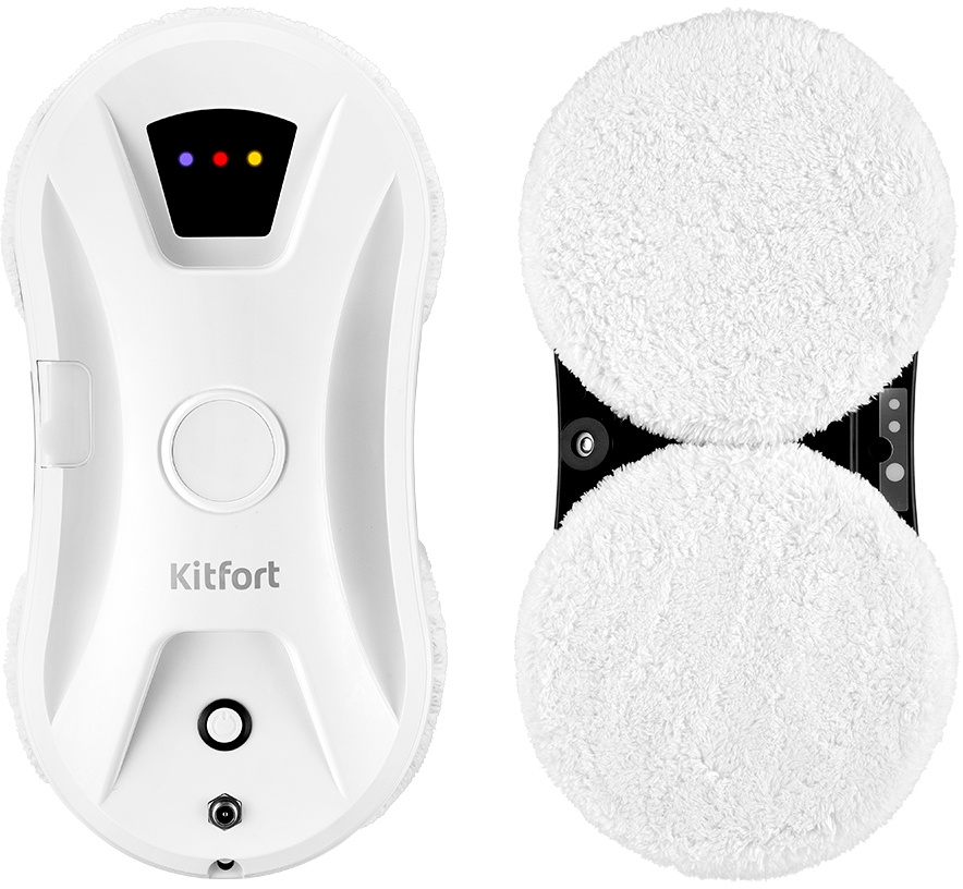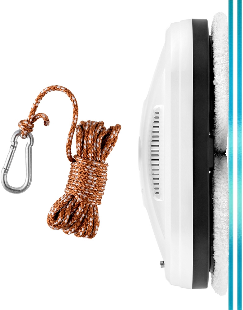 Робот КТ-5181 предназначен для мытья стеклянных, кафельных и зеркальных поверхностей. К двум держателям тряпок на дне робота крепятся чистящие тряпки. Прибор укомплектован страховочным тросом, поэтому вы можете использовать робот для высоких окон.