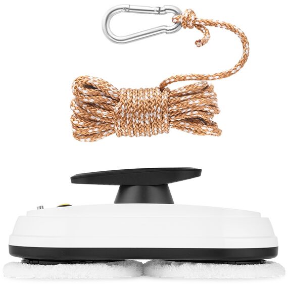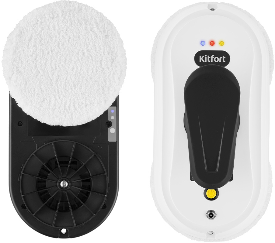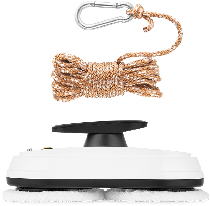Робот КТ-5182 предназначен для мытья стеклянных, кафельных и зеркальных поверхностей. К двум держателям тряпок на дне робота крепятся чистящие тряпки. Прибор укомплектован страховочным тросом, поэтому вы можете использовать робот для высоких окнах.
