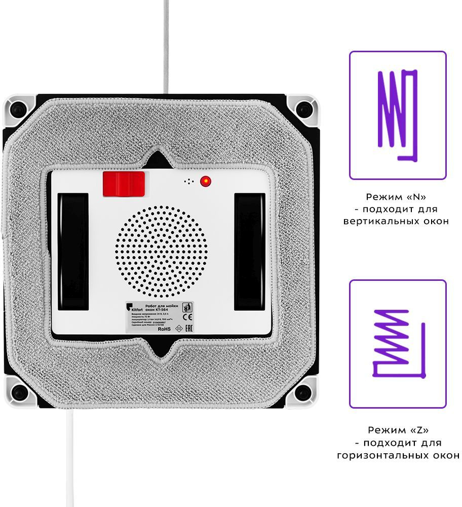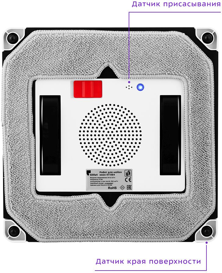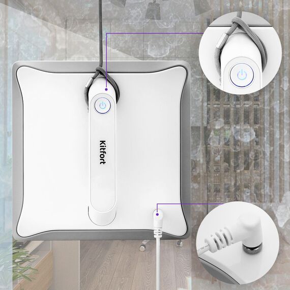 Робот Kitfort КТ-564 предназначен для мытья стёкол изнутри и снаружи, кафельных и зеркальных покрытий в жилых и небольших офисах. Робот оснащён вентилятором, благодаря которому создаётся разрежение, и он надёжно удерживается на вертикальной поверхности.