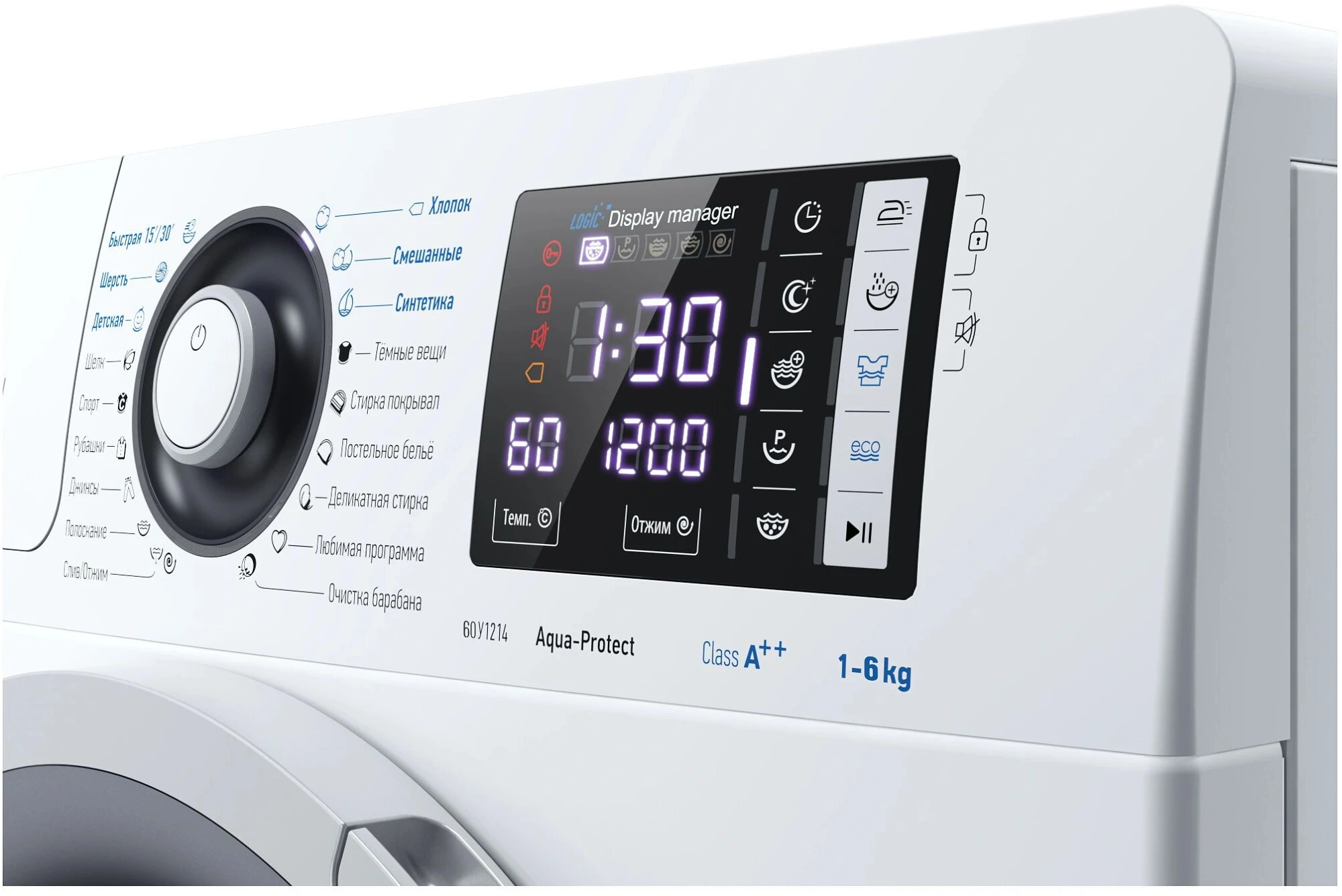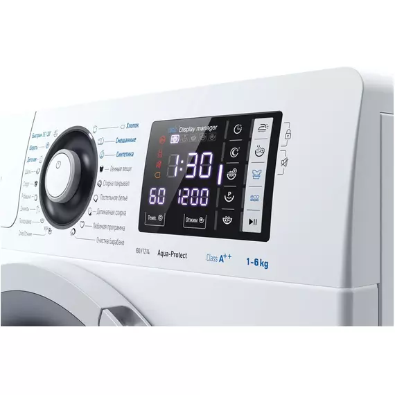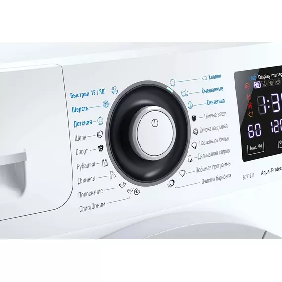 | Безопасность и управление | блокировка от случайного нажатия, дисплей, защита от детей, защита от протечек, защита от скачков напряжения, контроль дисбаланса, контроль уровня пены, самодиагностика неисправностей, сенсорная панель управления, таймер отсрочки запуска |