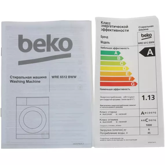 Стиральная машина Beko WRE6512BWW класс: A загр.фронтальная макс.:6кг белый [7329810001]