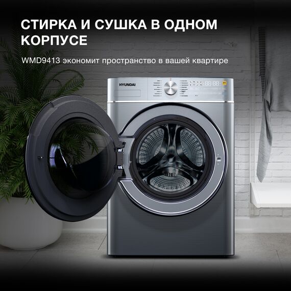 Стиральная машина Hyundai WMD9413 класс: B загр.фронтальная макс.:10кг (с сушкой) темно-серебристый инвертер
